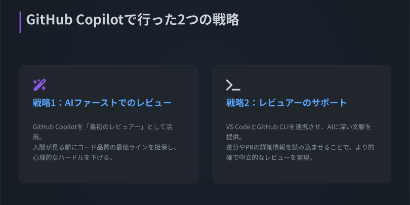 - AIエージェントを利用してAIとの共同で開発を進めるプロセスと開発チーム体制の再構築。ペアプログラミングの見直しや品質担保のプロセス定義の実施。